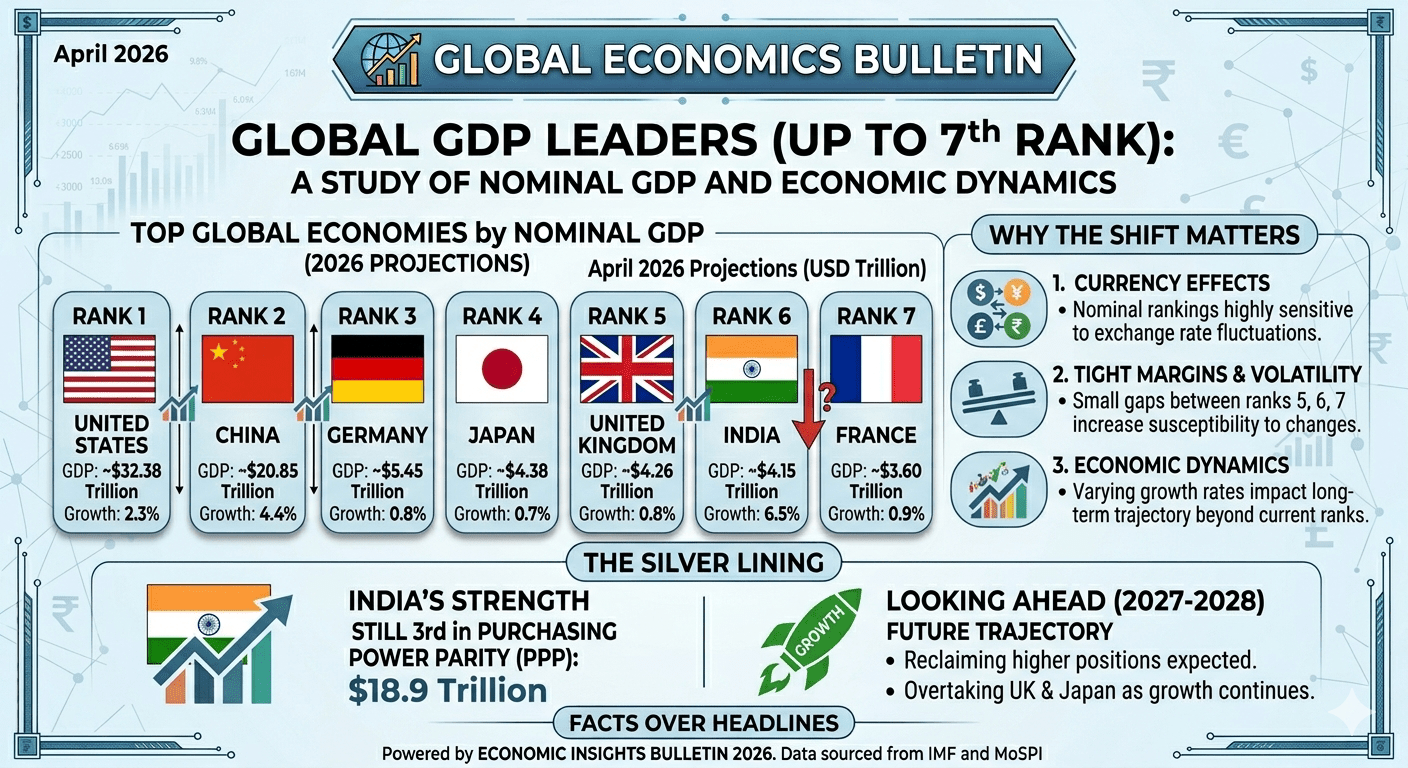For the past few years, India’s rise to the world’s 5th largest economy was a symbol of its global ascent. However, the April 2026 IMF World Economic Outlook has revealed a shift: India has moved to 6th place, with the United Kingdom reclaiming the 5th spot.